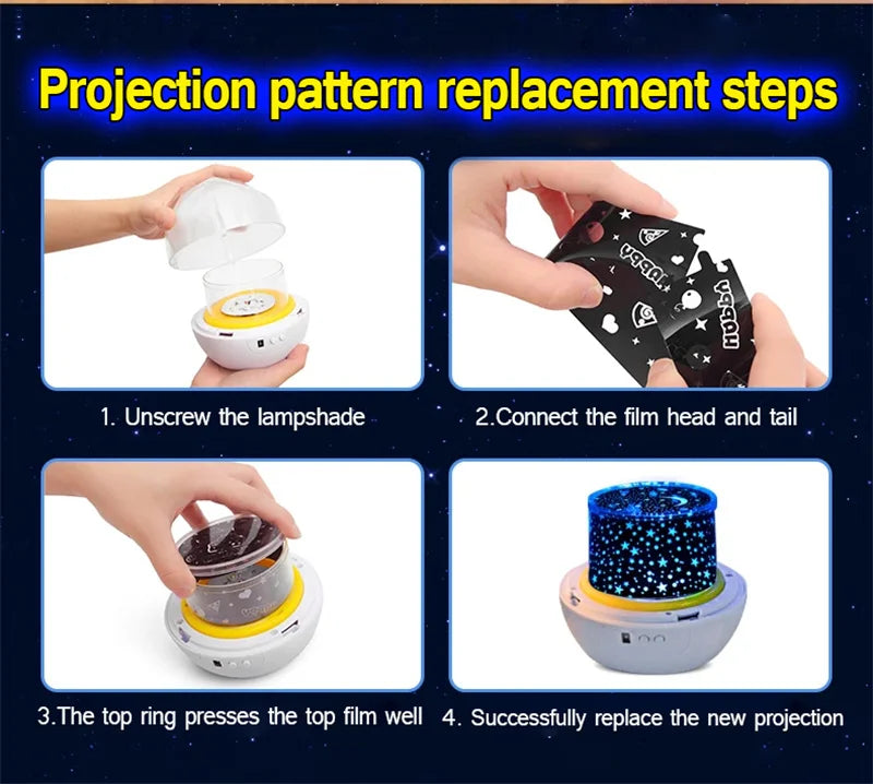 🌌 Star & Galaxy Projection – Rotating night sky filled with stars and patterns.